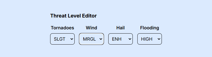 Unlike the 7-day forecast graphic which currently takes data from a YAML configuration file, the Threatcast graphic can be dynamically edited from the browser via a simple form!